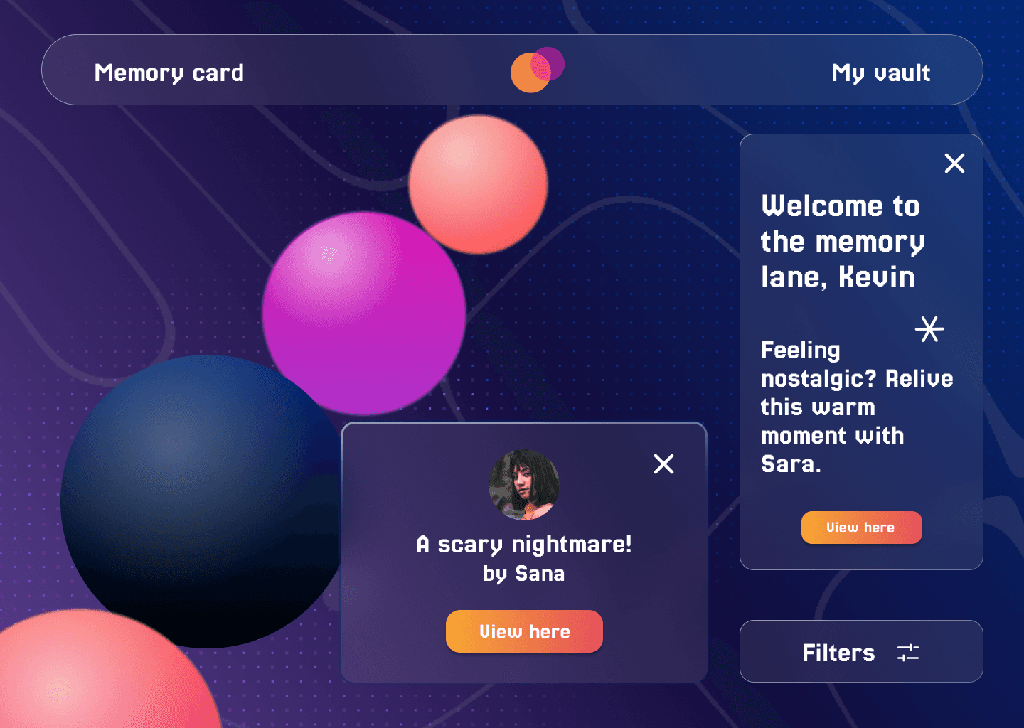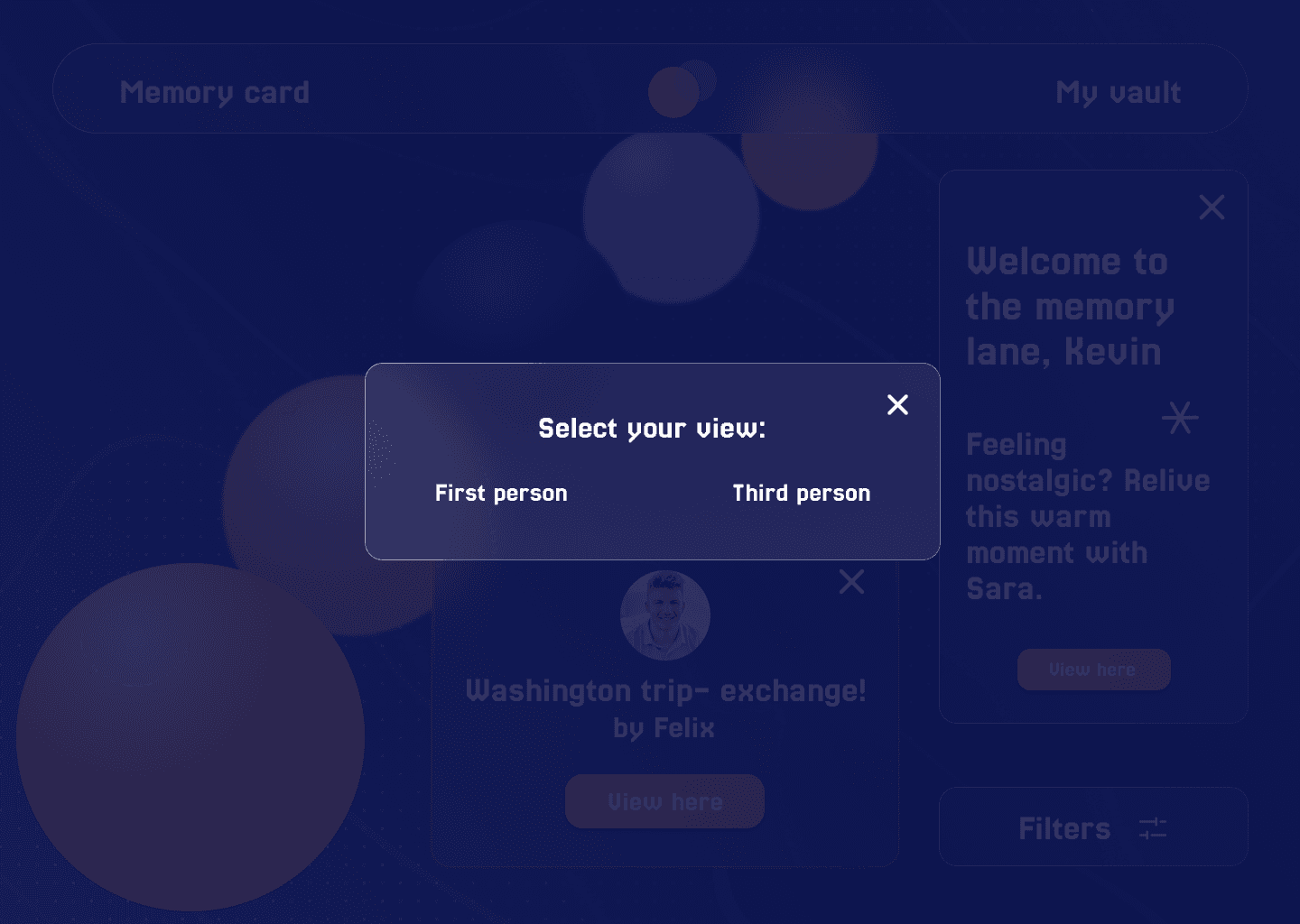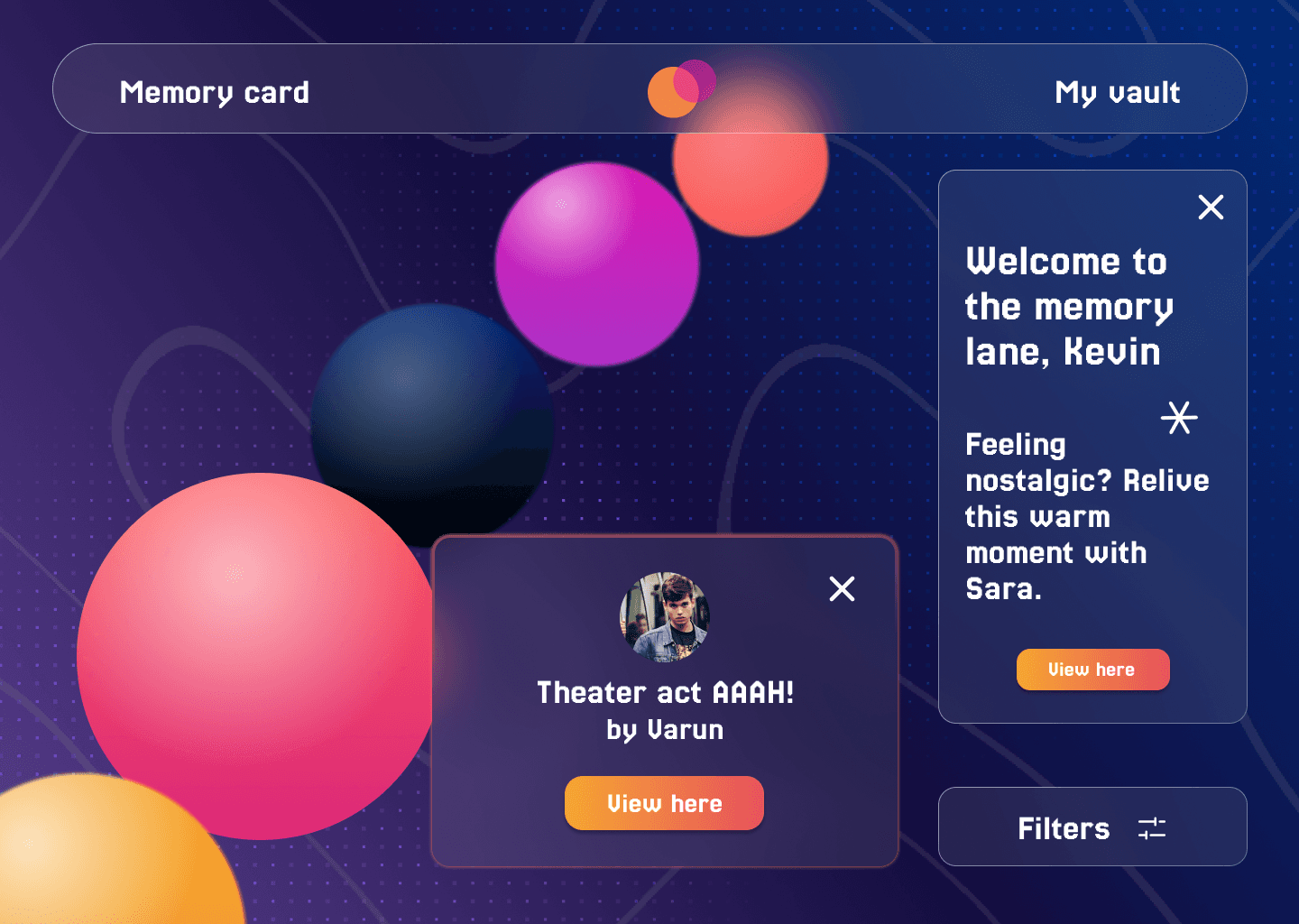 Concept note: An immersive VR app that turns your strongest emotional moments into glowing memory orbs. A wearable device, like a watch or smart glasses, detects spikes in your brain when you’re extremely happy, sad, excited or reflective. These moments are instantly captured as vivid memories. You can revisit each orb in first-person or third-person, delete what you don’t want and share memories with friends and family who live far away. They can step inside your experiences in VR and feel closer to you, no matter the distance.
