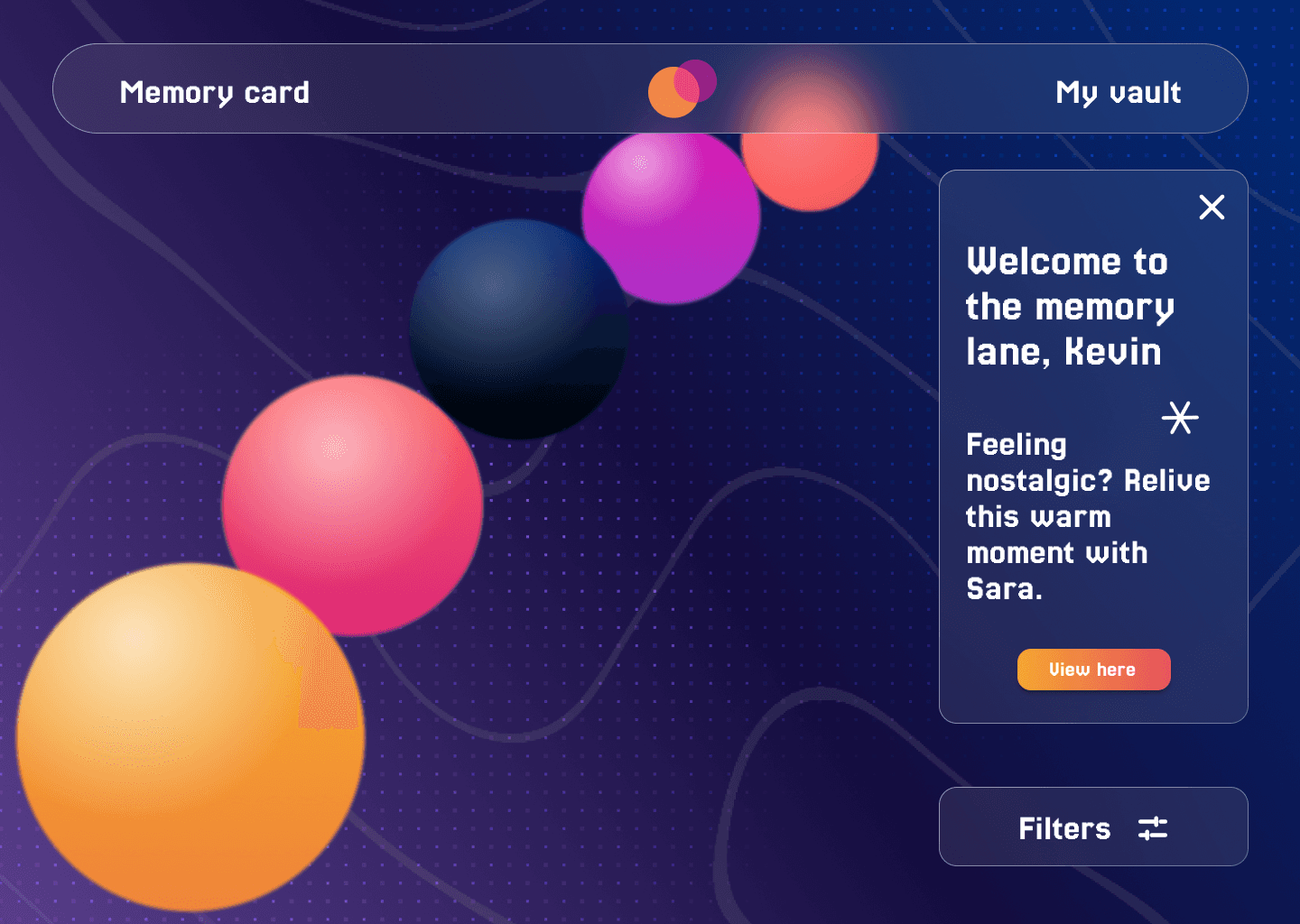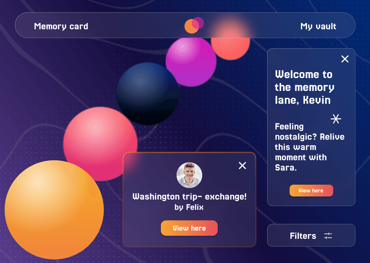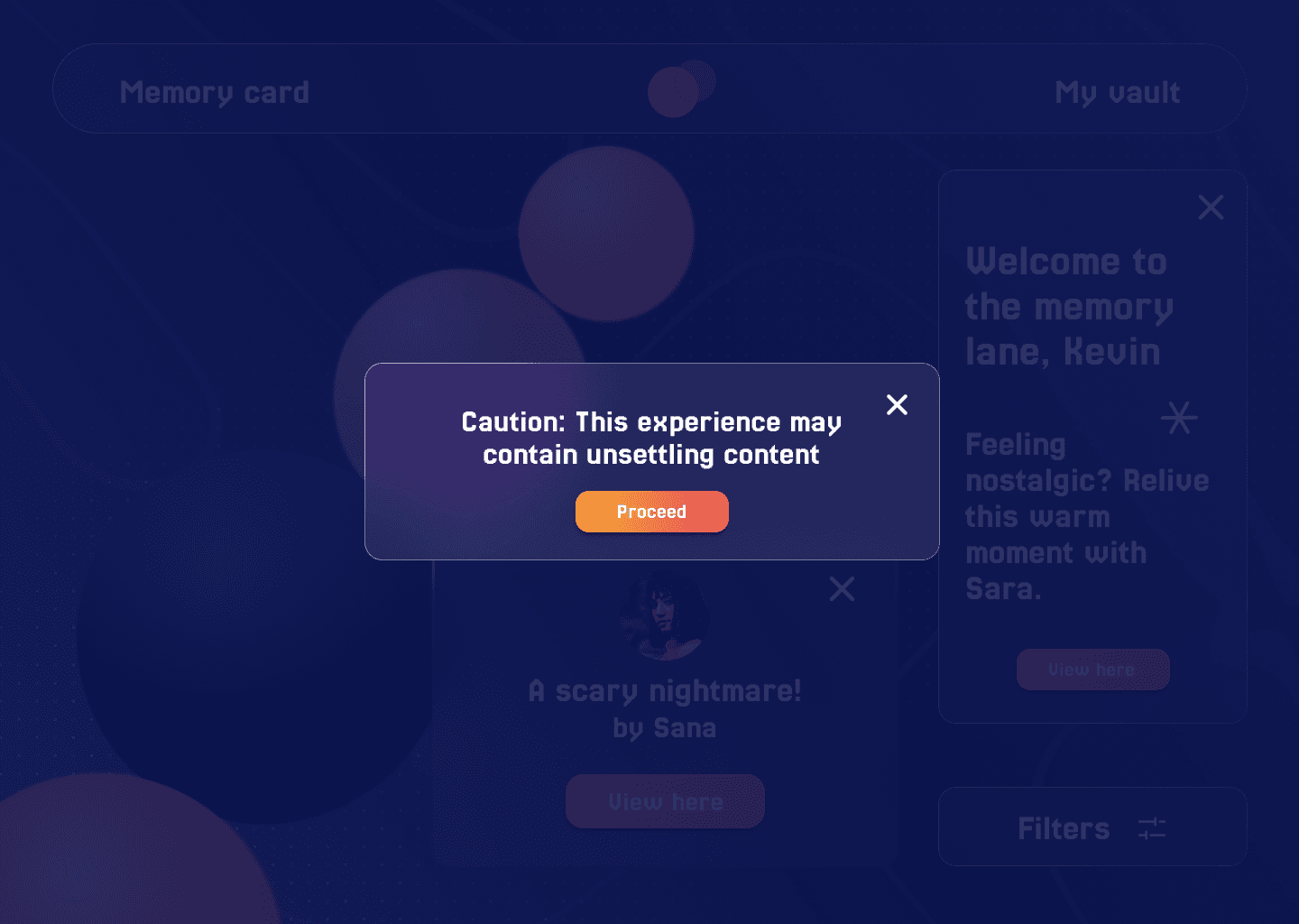 Concept note: An immersive VR app that turns your strongest emotional moments into glowing memory orbs. A wearable device, like a watch or smart glasses, detects spikes in your brain when you’re extremely happy, sad, excited or reflective. These moments are instantly captured as vivid memories. You can revisit each orb in first-person or third-person, delete what you don’t want and share memories with friends and family who live far away. They can step inside your experiences in VR and feel closer to you, no matter the distance.